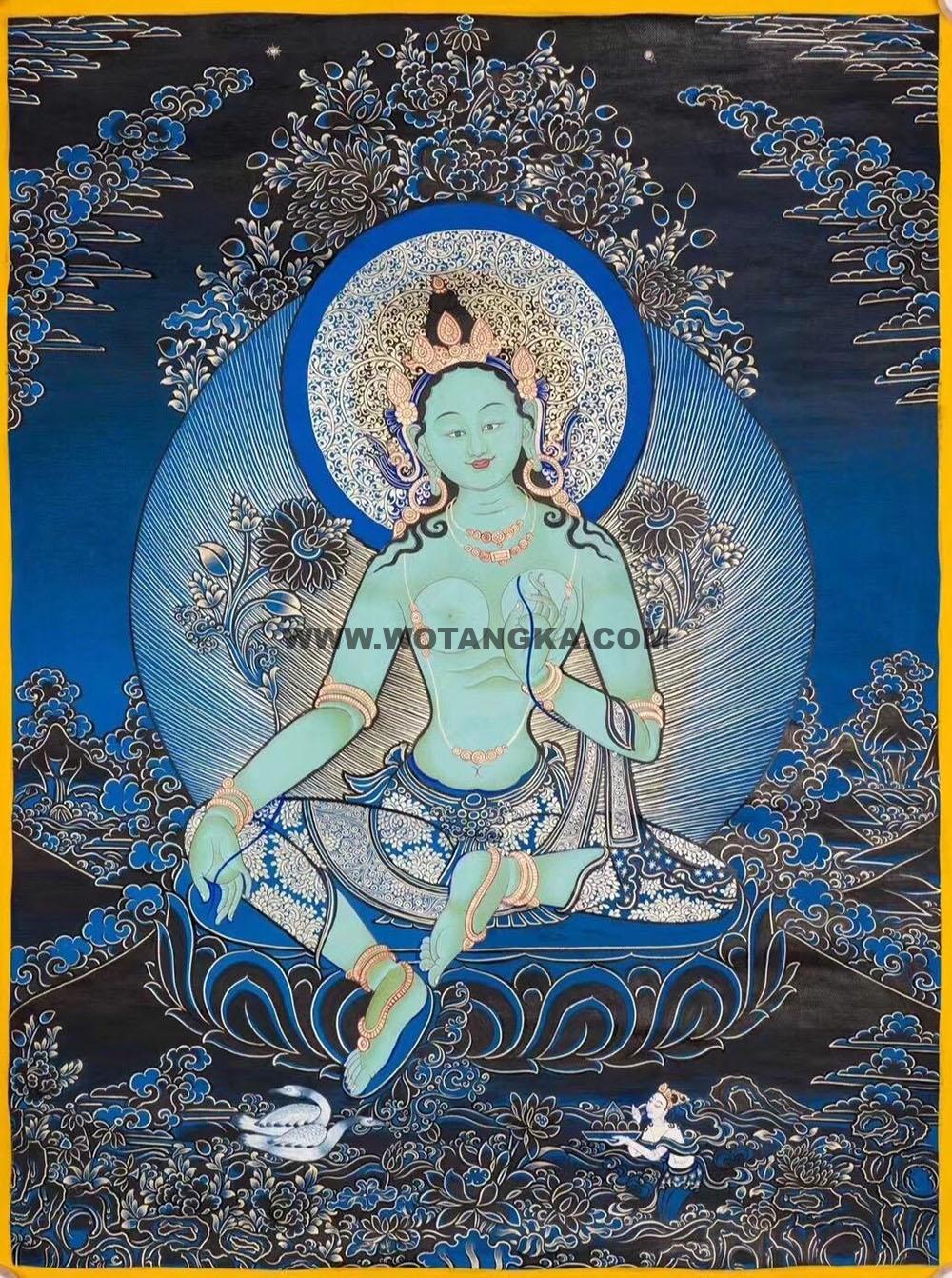 编号188-410474:蓝金唐卡-绿度母(60*45CM左右) | 沃唐卡www.WoTangKa.com