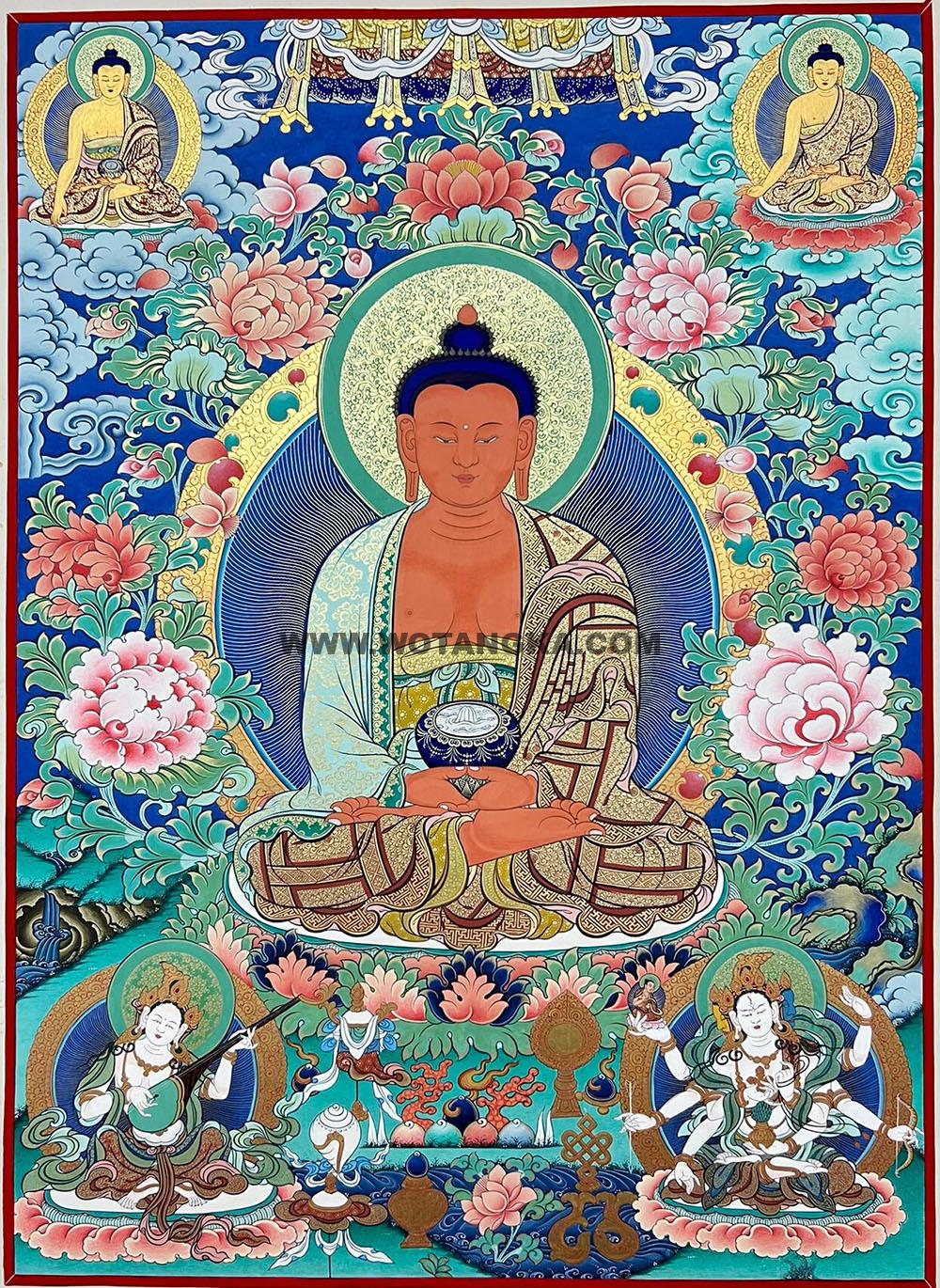 唐卡材质:白棉布、名贵矿石颜料、黄金等贵金属