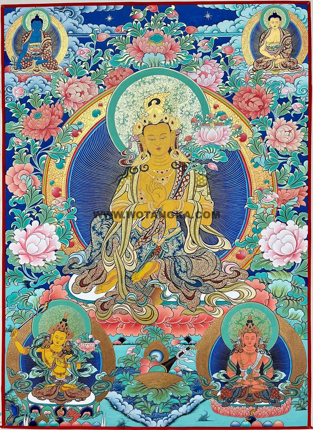 唐卡材质:白棉布、名贵矿石颜料、黄金等贵金属