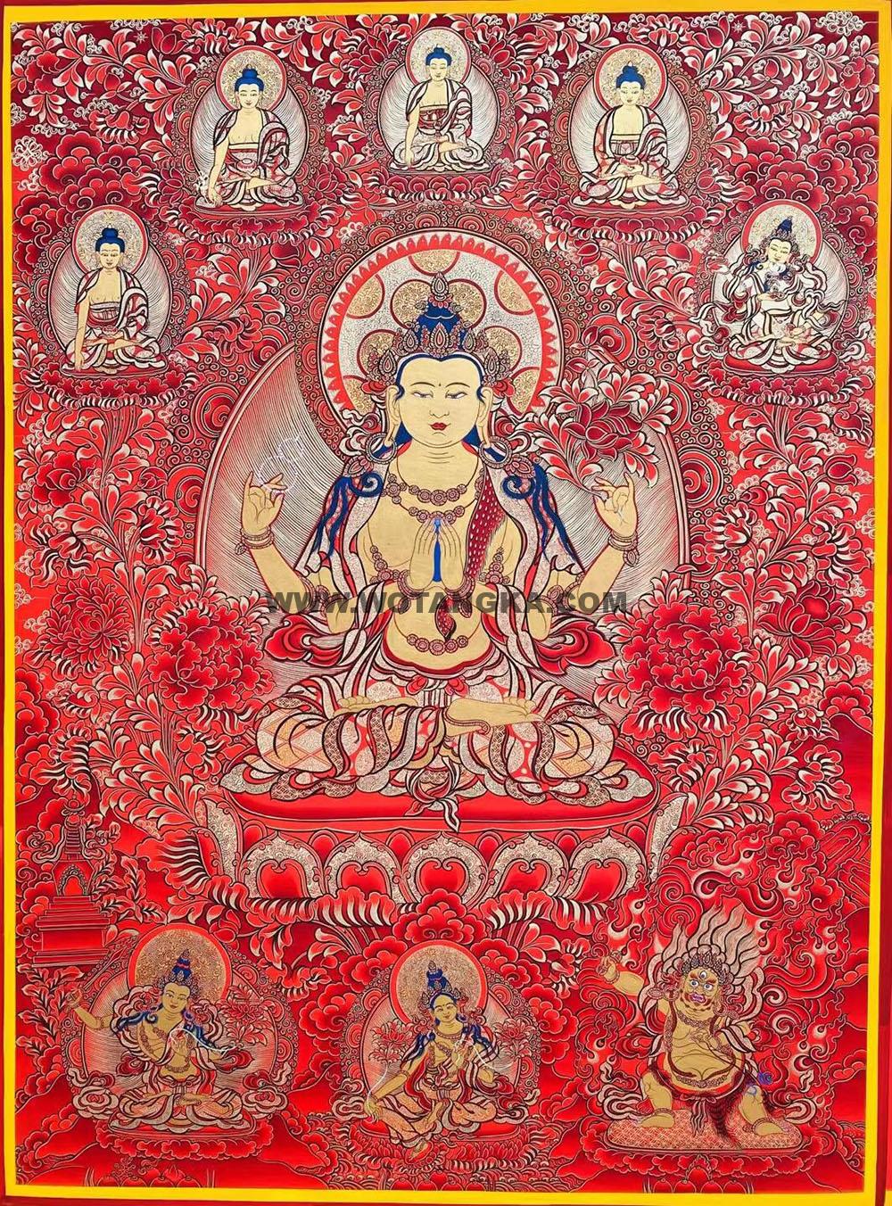 编号188-745019:红金唐卡-四臂观音·三怙主(100*70CM左右)