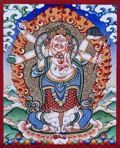 六臂白玛哈嘎拉正名为白如意珍宝依怙主 。首宏於香巴噶举,後另传至萨迦派分支,为特别不共法门,是求财的智慧护法,相传此尊住於印度清凉尸陀林。