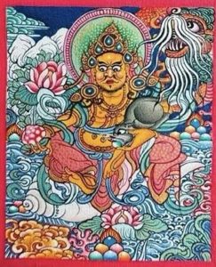 黄财神在象雄文中称为“占巴拉”,藏文叫做“诺拉”,翻译成汉文叫做“财神”。 藏名叫作“占巴拉色波”或“藏色”,他的色肤是黄色,故称为黄财神。黄财神为藏地各大教派尊奉的五色财神之一,黄财神在密宗教法中,属于财神也是护法神,五色财神之一。