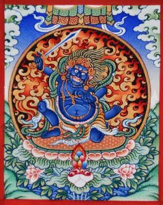 另,在藏密系统里,忿怒不动明王形象跟东密形象又有不同之处,且根据仪轨之不同,身色亦有所不同,有蓝色、白色等。