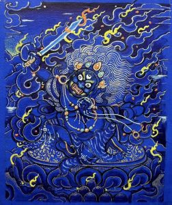 另,在藏密系统里,忿怒不动明王形象跟东密形象又有不同之处,且根据仪轨之不同,身色亦有所不同,有蓝色、白色等。