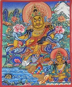 黄财神,藏文叫做“诺拉”,翻译成汉文叫做“财神”。 藏名叫作“占巴拉色波”或“藏色”,他的色肤是黄色,故称为黄财神,是密教之护法神祇,诸财神之首,黄财神为藏地各大教派奉持的五色财神之一,五色财神分别是:白财神、黄财神、红财神、绿财神、黑财神。