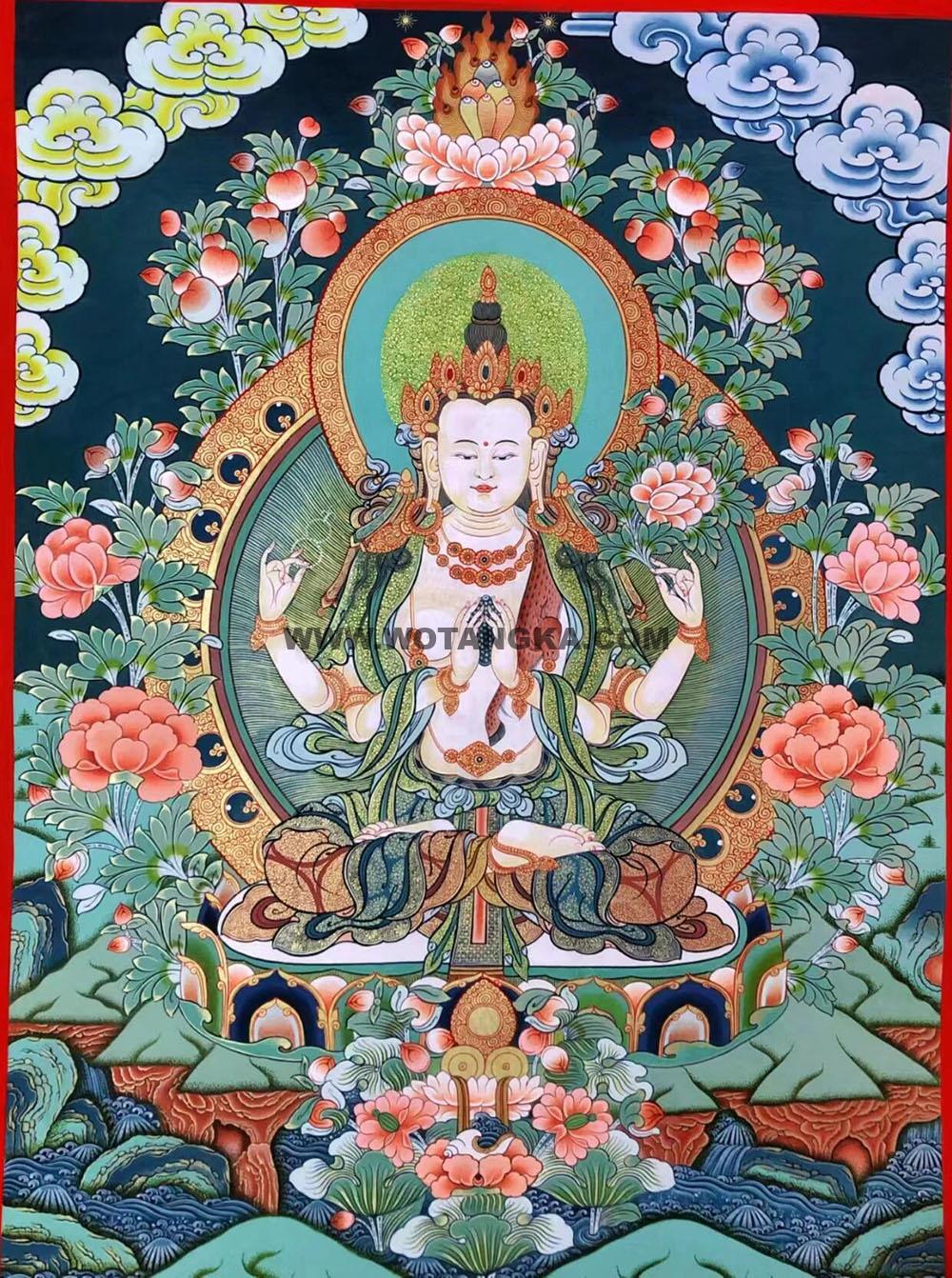 编号188-228932:彩绘唐卡-四臂观音(60*45CM左右) | 沃唐卡www.WoTangKa.com