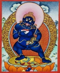 黑财神藏名“藏拉那波”,乃是东方佛里的金刚不动佛。藏传佛教财神之一。由古印度财神(梵名库别拉)演化而来,藏语称“赞布绿那布”,为了利益娑婆众生解脱穷困之苦而化现,在密宗认为,黑财神是五姓财神中施财立即见效的财神,甚至称他为财神王。