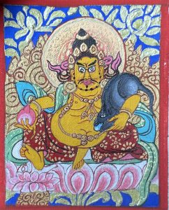 黄财神在象雄文中称为“占巴拉”,藏文叫做“诺拉”,翻译成汉文叫做“财神”。 藏名叫作“占巴拉色波”或“藏色”,他的色肤是黄色,故称为黄财神。黄财神为藏地各大教派尊奉的五色财神之一,黄财神在密宗教法中,属于财神也是护法神,五色财神之一。