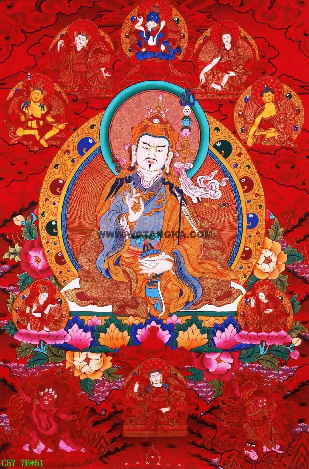 莲花生大士梵语音译为巴特玛萨木巴瓦,印度僧人建立藏传佛教前弘期传承的重要人物,西藏密宗红教开山祖师,8世纪后半期把佛教密宗传入西藏,帮助西藏正式建立了佛教传播的基础,因此受到藏族人民的爱戴,尊奉他为藏密的开基祖,是宁玛派的传承祖师,无上密乘大圆满教法的传承祖师。莲花生大士集智慧、慈悲和伏恶的力量于一身,拥有无边的法力,清除一切违缘障法,祈祷莲师有不可思议的功德。