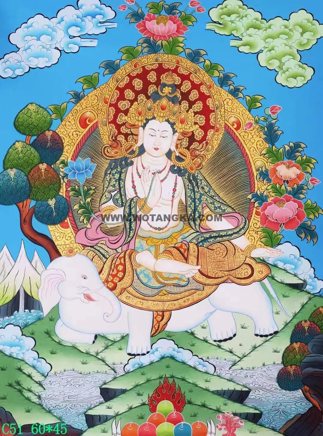 尼泊尔知名唐卡画师力作《普贤菩萨》唐卡手绘布本,作品采用24K真金描线,天然矿石颜料着色晕染,画工细腻,开脸殊胜,是一副难得一见的好唐卡作品。