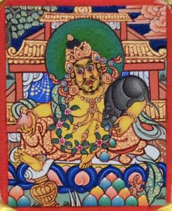 黄财神在象雄文中称为“占巴拉”,藏文叫做“诺拉”,翻译成汉文叫做“财神”。 藏名叫作“占巴拉色波”或“藏色”,他的色肤是黄色,故称为黄财神。黄财神为藏地各大教派尊奉的五色财神之一,黄财神在密宗教法中,属于财神也是护法神,五色财神之一。