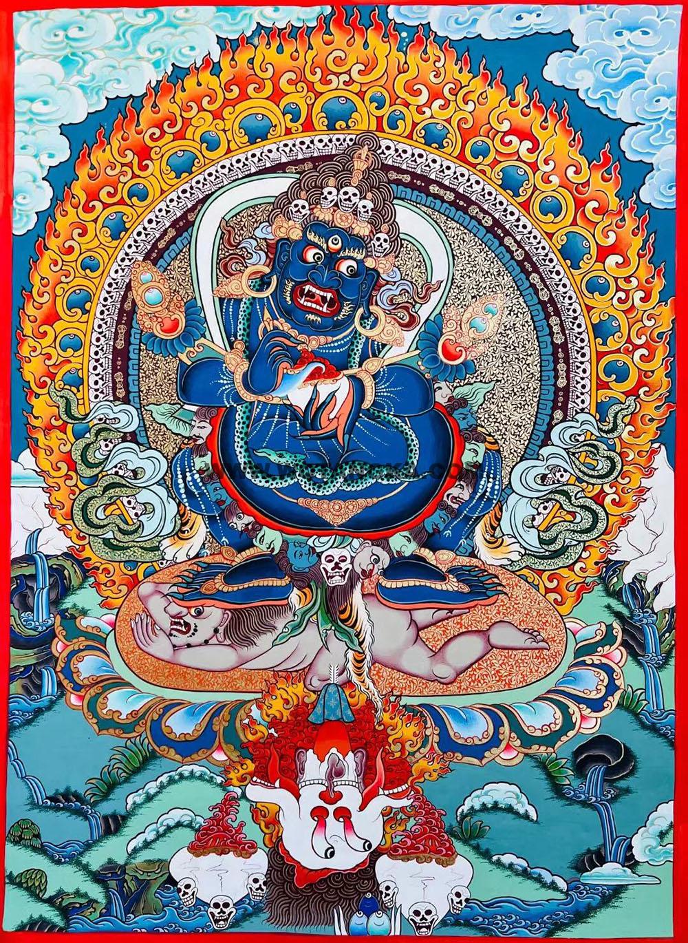 宝帐护法是大黑天的变化身之一。公元11世纪时,伟大的翻译师仁钦桑布(RinchenSan),引进大黑天入藏,该神的任务不仅是扮演寺庙的护法,也成为保护众生的藏域守护神,藏族人相信大黑天可为贫穷无福的百姓带来福报。