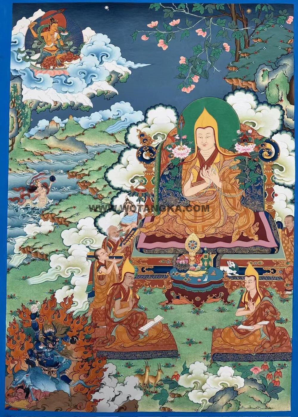 唐卡作品名称:宗喀巴大师说法阎魔护法智慧吉祥供养图
