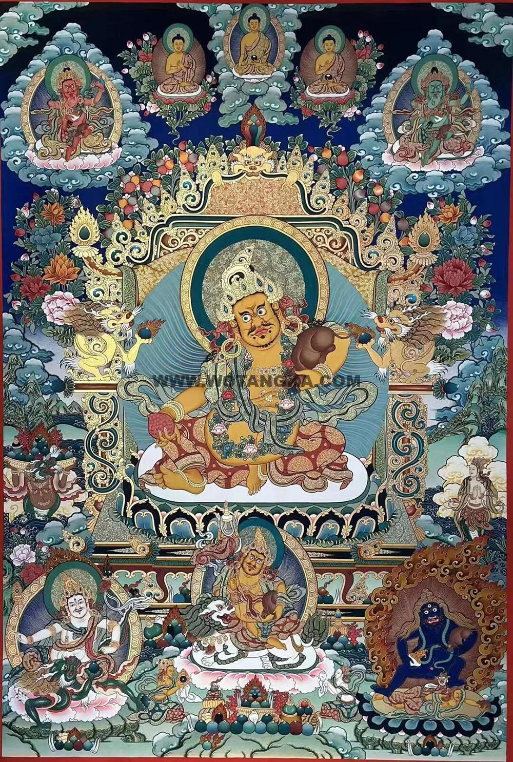 编号188-995734:彩绘唐卡-黄财神·五方财神(100*70CM左右) | 沃唐卡www.WoTangKa.com