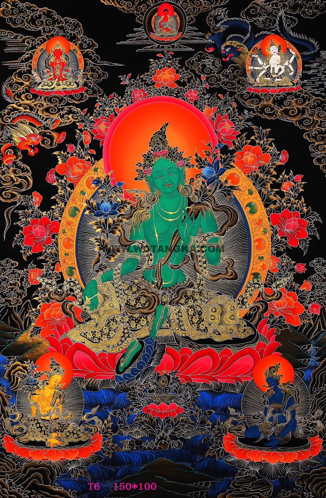 尼泊尔画师力作【绿度母】作品采用金粉混合矿物颜料纯手绘而成。作品主尊宝相传神,布图精美、画工非常的细腻,严格的遵照佛经的度量仪轨如法绘制,期待有缘人。
