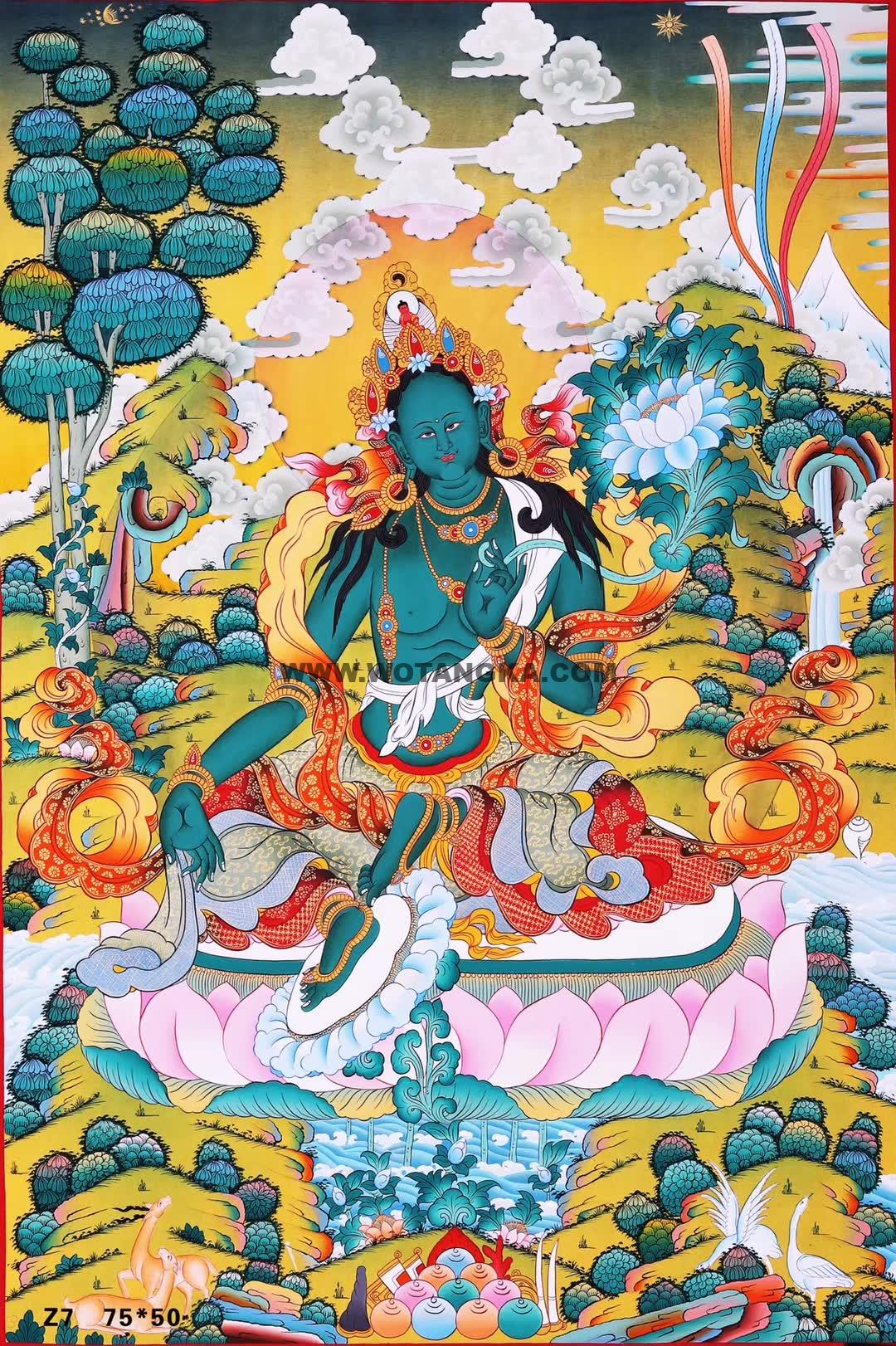 尼泊尔画师力作【绿度母】作品采用金粉混合矿物颜料纯手绘而成。作品主尊宝相传神,布图精美、画工非常的细腻,严格的遵照佛经的度量仪轨如法绘制,期待有缘人。