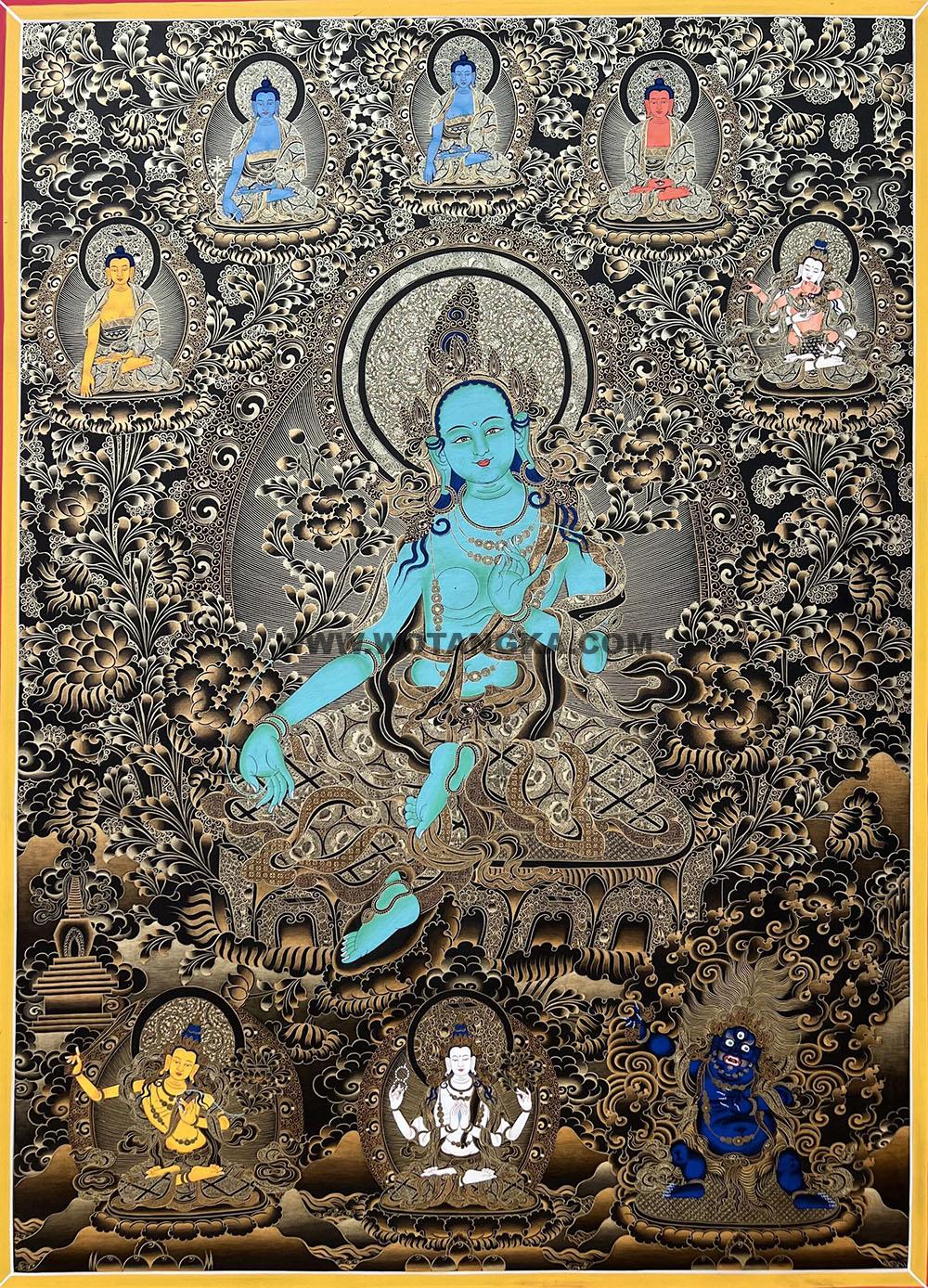 编号188-518416:黑金唐卡-绿度母(100*70CM左右)