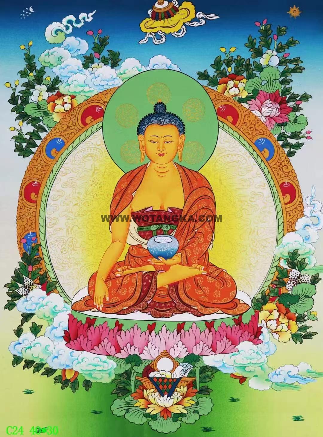 尼泊尔知名唐卡画师手绘力作精品,纯手绘布本唐卡【释迦牟尼佛】,作品采用24K真金金粉混合天然颜料纯手绘而成。作品主尊宝相传神。布图干净精美、画工非常的细腻,严格的遵照佛经的度量仪轨如法绘制,期待有缘人。