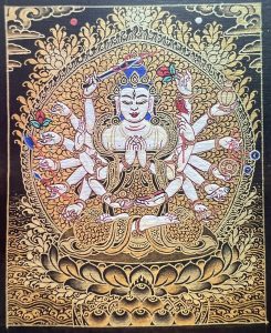 小唐卡材质:白棉布、名贵矿石颜料、黄金等贵金属
