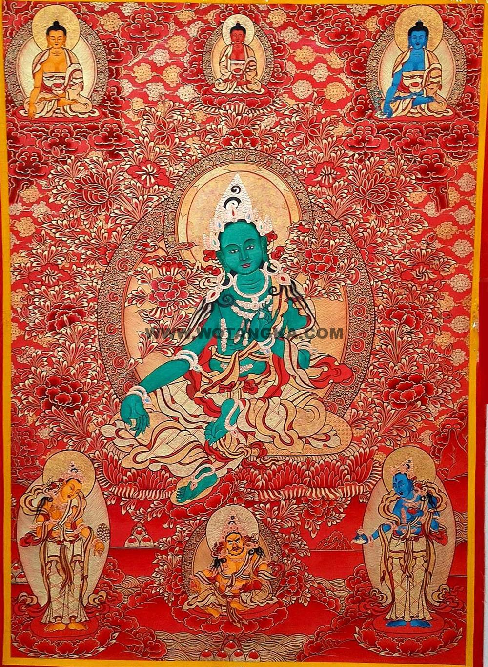 编号188-542936:红金唐卡-绿度母(80*60CM左右) | 沃唐卡www.WoTangKa.com