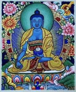 此尊胜佛誓愿不可思议,若有人身患重病,死衰相现,眷属于此人临命终时,昼夜尽心供养礼拜药师佛,读诵药师如来本愿功德经49遍,燃四十九灯,挂四十九天之五色彩幡,其人得以延生续命。
