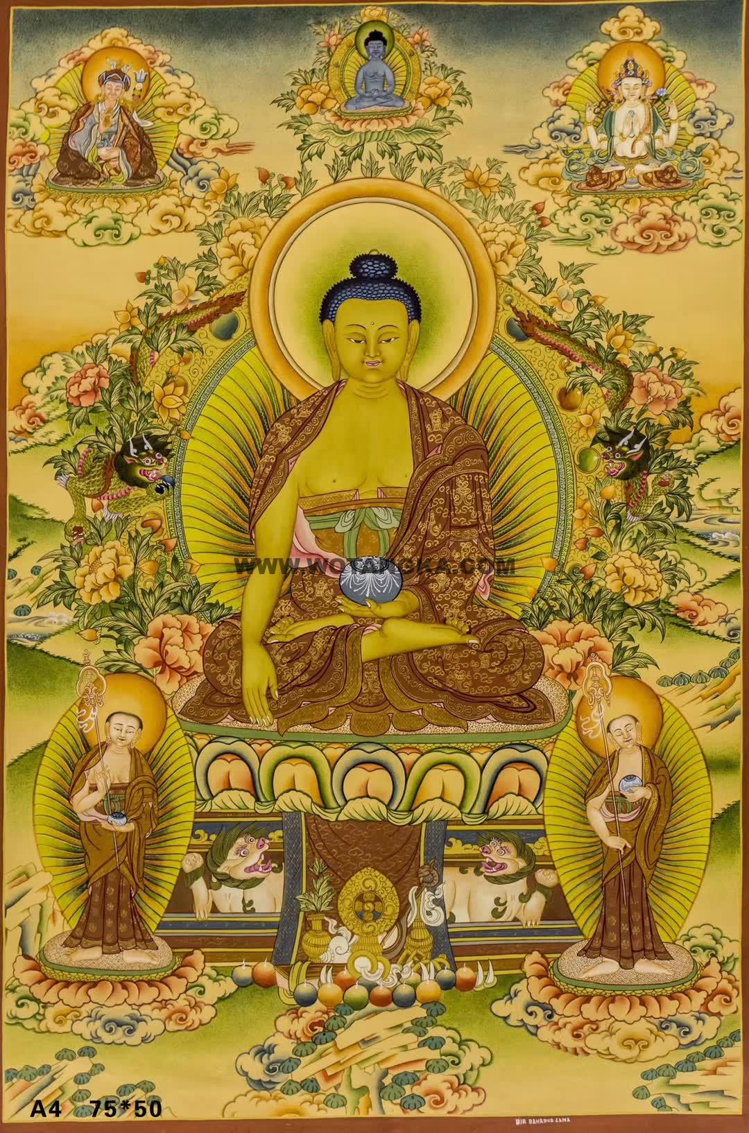 尼泊尔BIR·BAHDOR喇嘛力【释迦牟尼佛】唐卡手绘布本,采用24K真金描线,黄底色打底,天然矿石颜料着色晕染,画工细腻,开脸殊胜,是一副难得一见的好唐卡作品,期待有缘人。