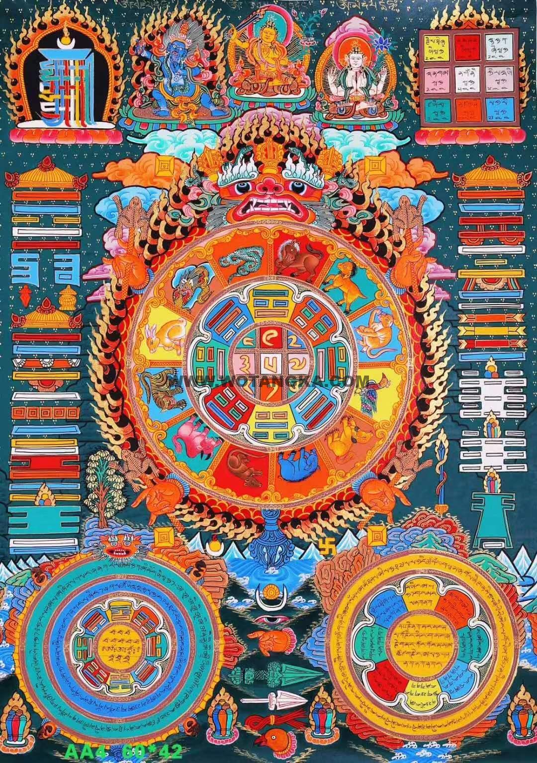 尼泊尔唐卡大师作品《九宫八卦》,作品采用24K真金描线,混合天然颜料纯手绘而成。作品主尊宝相传神,布图干净精美、画工非常的细腻,严格的遵照佛经的度量仪轨如法绘制,期待有缘人。