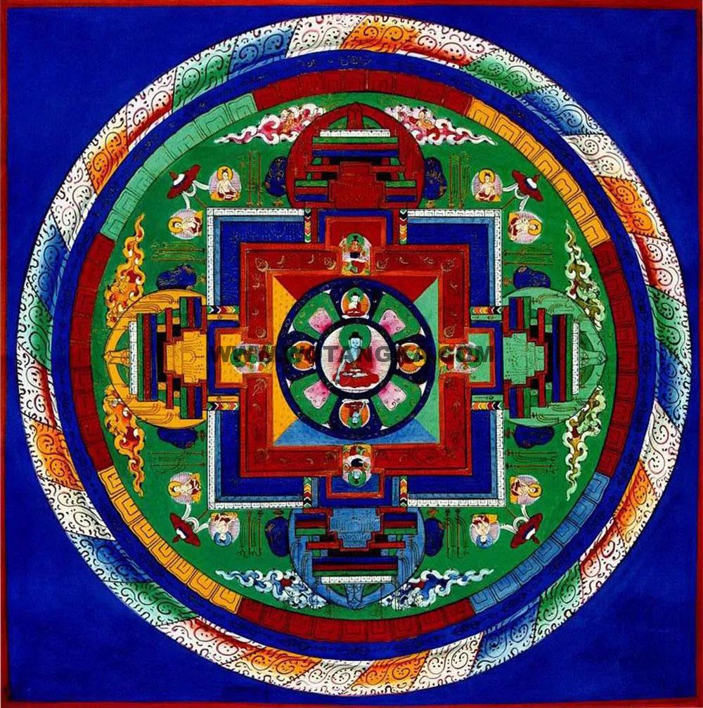 坛城,梵文及巴利文:Mandala,源自于古代印度,是古印度宇宙观的体现。佛教中坛城是圣地的意思,是佛国世界在人间的体现。密宗弟子根据《大日经》和《金刚顶经》等建立坛城,使佛国具体化。不同种类的坛城代表不同的佛国世界。所谓坛城,是表达佛的居住圣地的圣图,凡是佛的圣殿,或是佛逝世后焚身的金刚圣殿等,都可以见到围绕佛的形象所描绘的美丽图案和色彩造型。