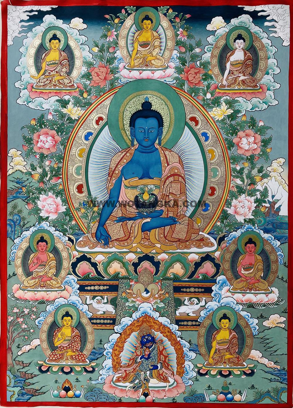 编号188-173293:彩绘唐卡-药师佛·药师七佛(100*70CM左右) | 沃唐卡www.WoTangKa.com