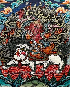 单坚护法主要护持密法,所以在格鲁派的上下密部学院都供奉这个护法。但他同时也是一位财神,具有生财的效用。
