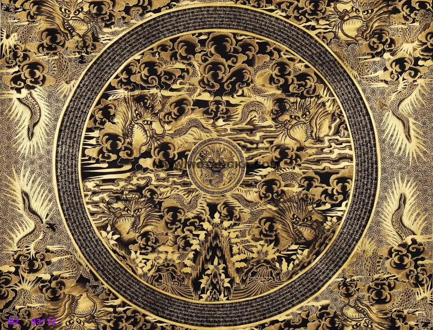 尼泊尔知名唐卡大师作品《龙坛城》,作品采用黑底色打底,24K真金磨粉描线,混合天然颜料纯手绘而成。作品主尊宝相传神,布图干净精美、画工非常的细腻,严格的遵照佛经的度量仪轨如法绘制,期待有缘人。