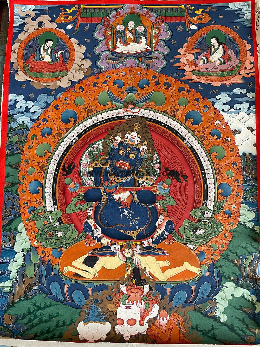中国唐卡艺术作品中的【红棒玛哈嘎拉】唐卡手绘布本,西藏知名画师索朗·画院出品,收藏供奉不要错过。作品主尊宝相传神, 采用天然矿石晕染,纯金描线,画工细腻,殊胜,精美、风格富丽,采用24K真金描绘,画工细腻,开脸殊胜,是一副难得一见的好唐卡作品。