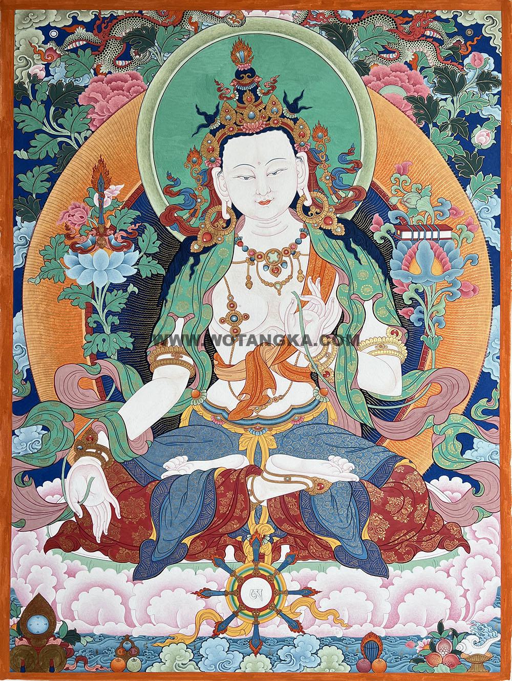 沃唐卡官方告知:由于一些唐卡画师的手机像素偏低,有的唐卡实拍图未必能清晰表达出整幅唐卡的效果,需要订购和了解详情的朋友可联系沃唐卡,告知唐卡编号即可了解该唐卡的细节及相关介绍。