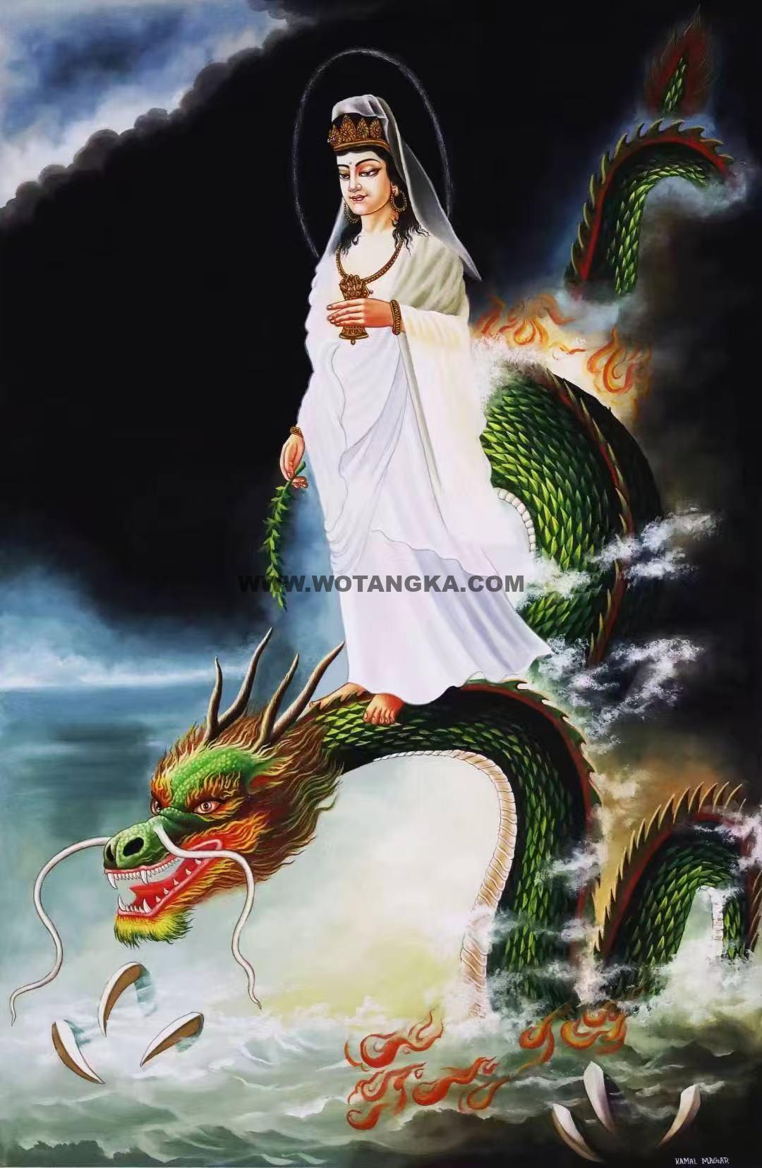 纽瓦立唐卡传世之作《御龙观音》唐卡,纽瓦立风格来源于尼泊尔当地的原始民族纽瓦立族群。这个族群以家族传承的方式延续着这种唐卡的风格。最早的纽瓦立唐卡都是秘密绘制并由长辈口耳相传整个绘画的技艺,并采用最高级的天然矿物质颜料绘画,这种风格的唐卡一度风靡全世界,并被各个皇族收藏保存。现而今,纽瓦立的族群已减少到不足二百人,但是其中大部分的青壮年都继承了老一辈的技艺,由于画师的数量不多,所以每一张的纽瓦立唐卡都倍受所有人的青睐。释迦摩尼是佛陀教育的创始人。