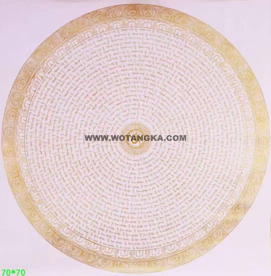 坛城象征宇宙本源,是圣坛的代表,挂与家里玄关之处,有镇宅辟邪的妖邪不入的作用,古代著名寺院皇宫都用此法门来镇宅辟邪,十分殊胜。喜欢不要错过。六字大明咒是观世音菩萨心咒,源于梵文中,此咒含有诸佛无尽的加持与慈悲,是诸佛慈悲和智慧的音声显现。能改变命运,修成幸福健康的人生。