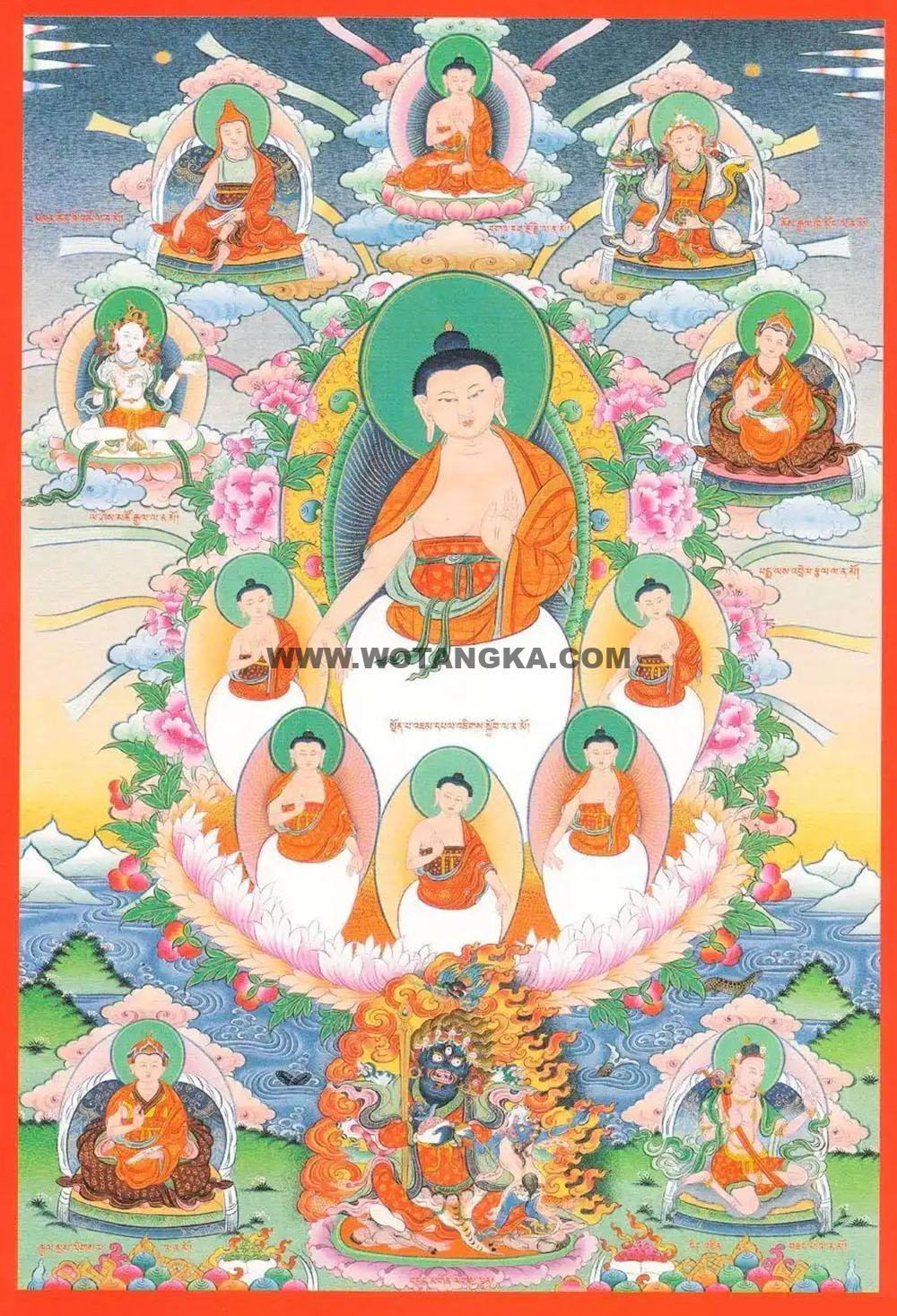 沃唐卡编号AC27384:扎西持林大圆满经堂十二本师像·十二位于给孤独园处本师名为释迦牟尼佛 | 沃唐卡www.WoTangKa.com