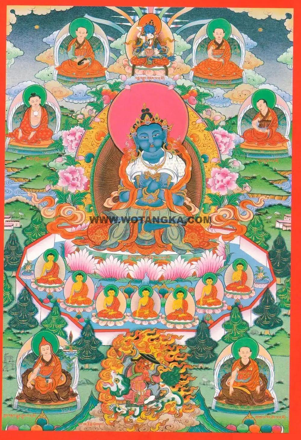 沃唐卡编号AC13879:扎西持林大圆满经堂十二本师像·第二处于娑婆世界中本师名为童子不乱光 | 沃唐卡www.WoTangKa.com
