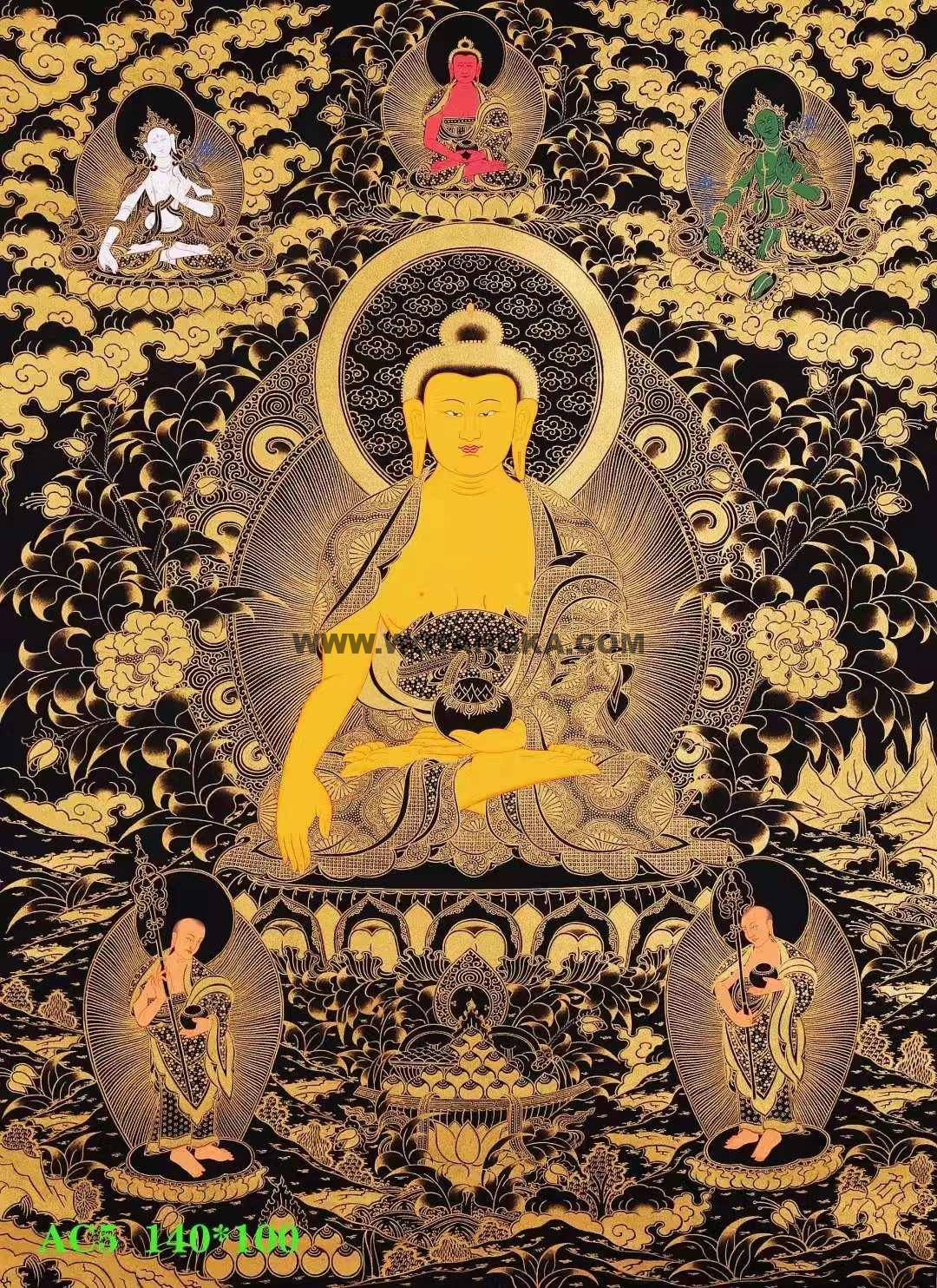 唐卡材质:白棉布、名贵矿石颜料、黄金等贵金属