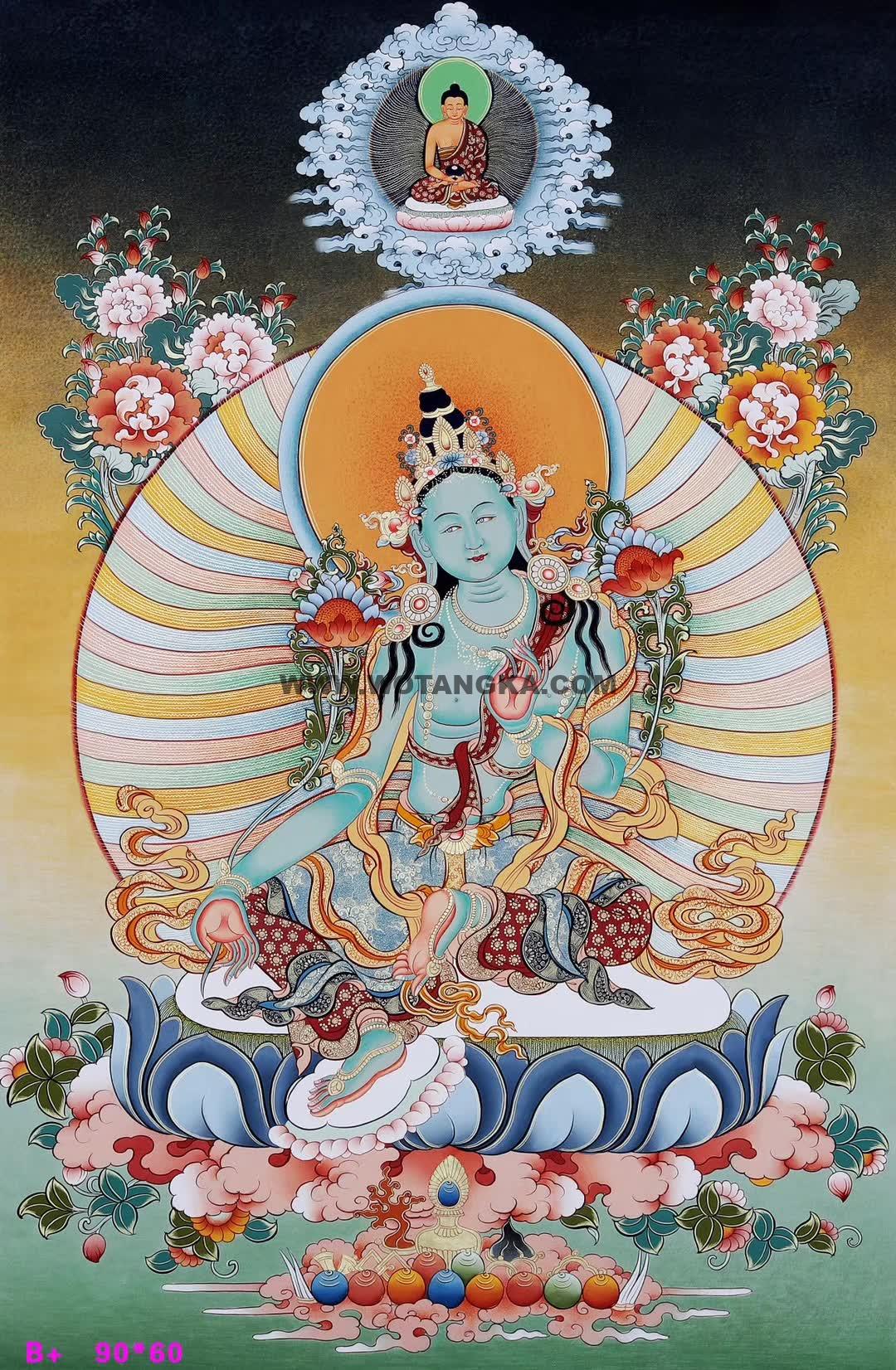 绿度母有消除众生的烦恼痛苦、满足众生愿求,现世富贵长寿平安吉祥、除诸病苦业魔障碍等,帮助众生解脱生死苦海,命终往生极乐世界,获得究竟的安乐,因为其救度之迅速、摧灭魔业之勇猛,故又称作“救度速勇母”。