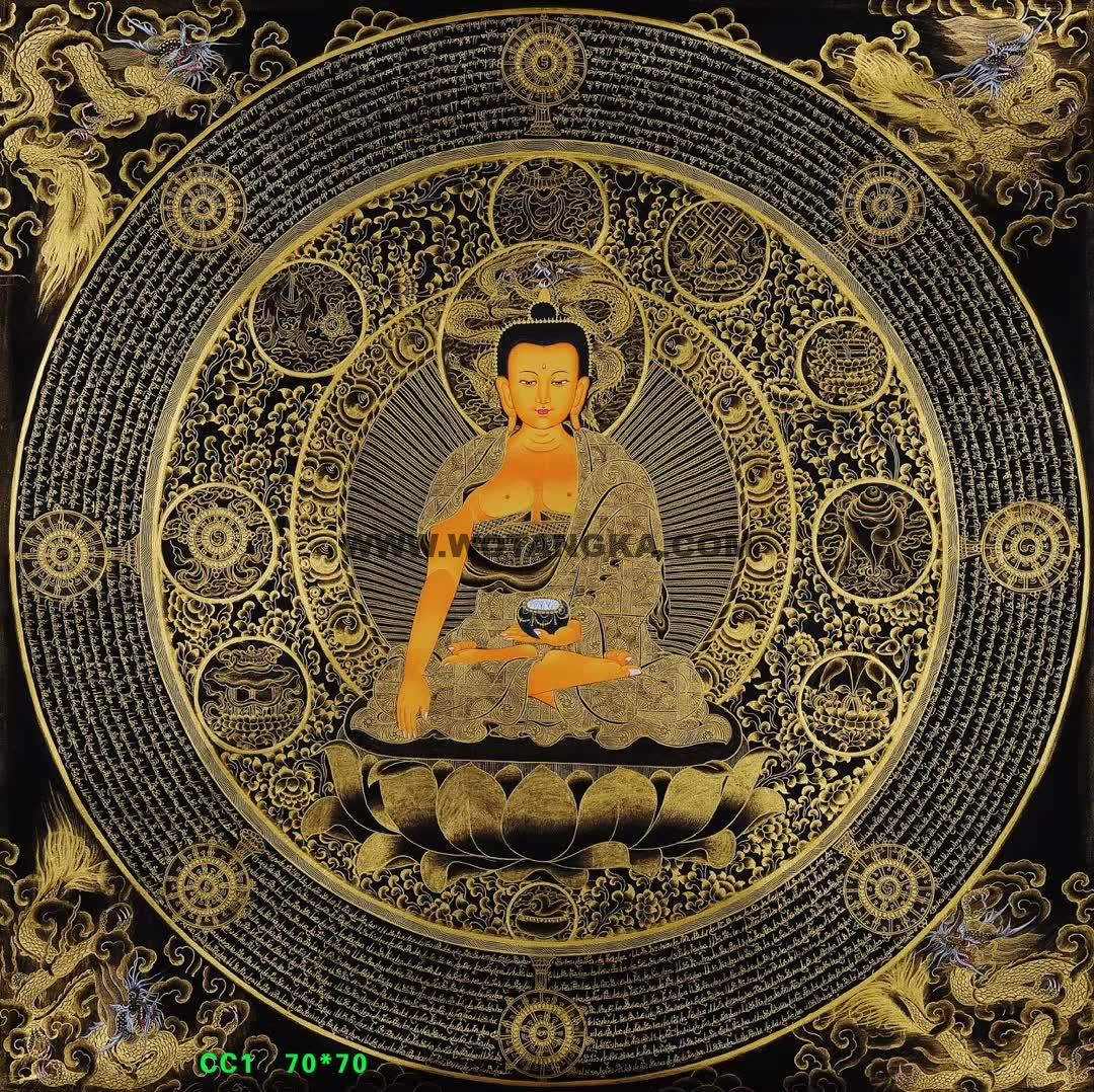 尼泊尔国宝级知名画僧那噶王(Nawang Lama)亲绘,《释迦牟尼佛坛城》唐卡由那噶王(Nawang Lama)喇嘛签名。 画工精美细腻,金线如发丝,晕染和描金相当的完美,难得的高品质精品唐卡,值得收藏的经典之作。 采用24K真金描线,天然矿石颜料着色晕染。画工细腻,开脸殊胜,是一副难得一见的好唐卡。