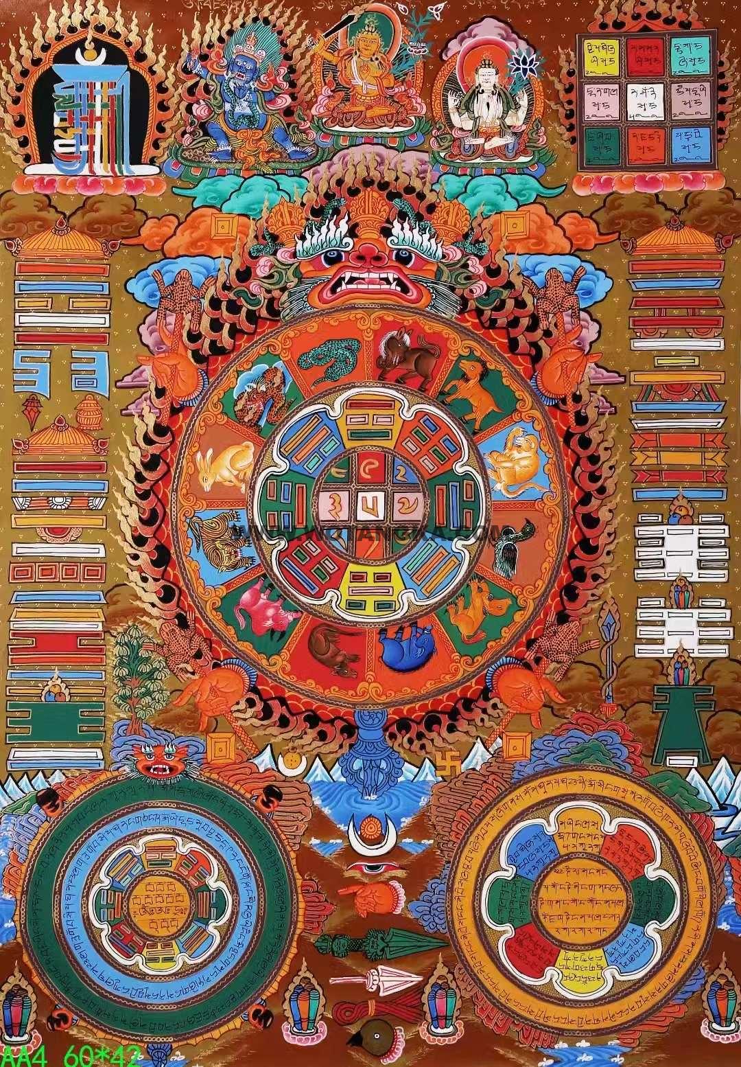 尼泊尔唐卡大师作品《九宫八卦》,作品采用24K真金描线,混合天然颜料纯手绘而成。作品主尊宝相传神,布图干净精美、画工非常的细腻,严格的遵照佛经的度量仪轨如法绘制,期待有缘人。