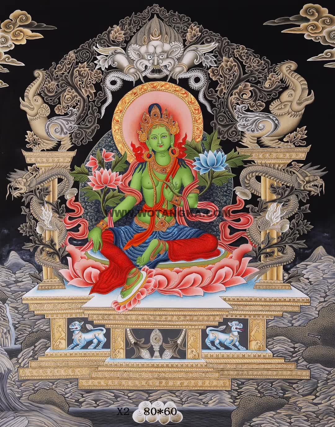尼泊尔知名BUDDHA LAMA喇嘛力作唐卡【绿度母】,主尊宝相传神,作品采用24K真金描线,天然矿石颜料着色晕染,画工细腻,开脸殊胜,是一副难得一见的好唐卡作品。