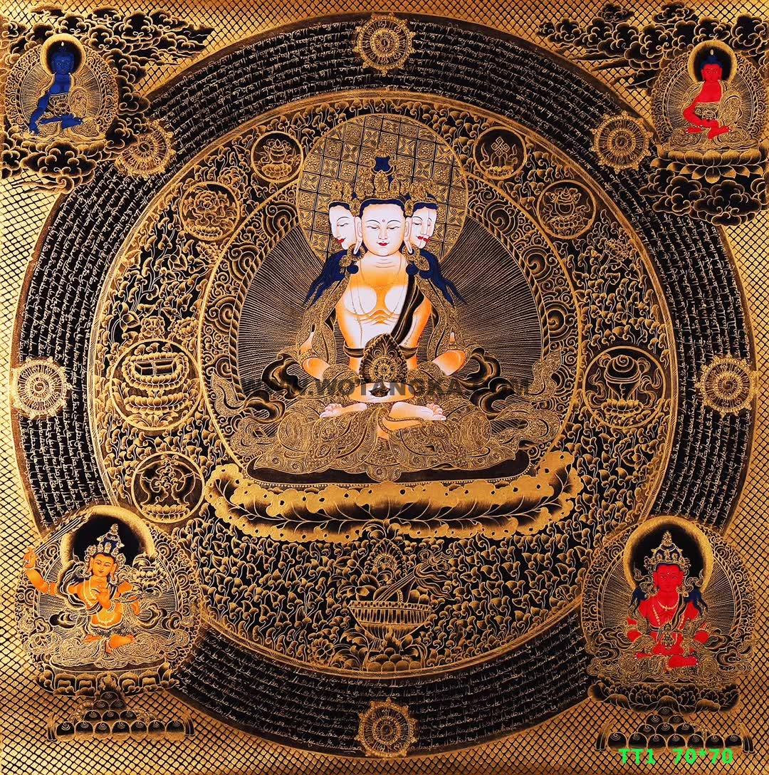 尼泊尔国宝级知名画僧那噶王(Nawang Lama)亲绘,《大日如来坛城》唐卡由那噶王(Nawang Lama)喇嘛签名。 画工精美细腻,金线如发丝,晕染和描金相当的完美,难得的高品质精品唐卡,值得收藏的经典之作。 采用24K真金描线,天然矿石颜料着色晕染。画工细腻,开脸殊胜,是一副难得一见的好唐卡。
