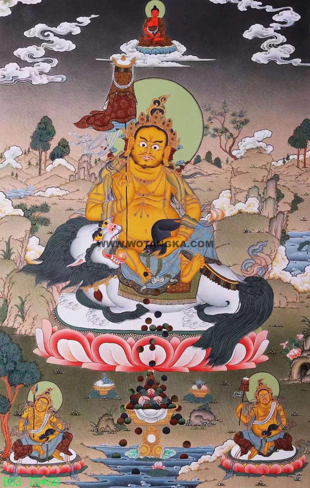 尼泊尔知名喇嘛力作《财宝天王》 唐卡手绘布本,采用天然矿物、宝石、植物、24K真金描绘。天然矿石颜料着色晕染,画工细腻,开脸殊胜,是一副难得一见的好唐卡作品。喜欢不要错过。