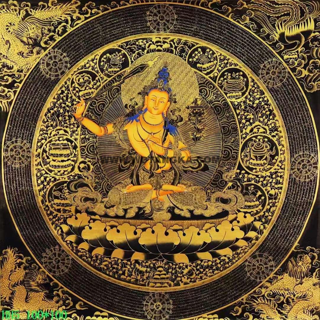 尼泊尔国宝级知名画僧那噶王(Nawang Lama)亲绘,《文殊菩萨坛城》唐卡由那噶王(Nawang Lama)喇嘛签名。 画工精美细腻,金线如发丝,晕染和描金相当的完美,难得的高品质精品唐卡,值得收藏的经典之作。 采用24K真金描线,天然矿石颜料着色晕染。画工细腻,开脸殊胜,是一副难得一见的好唐卡。