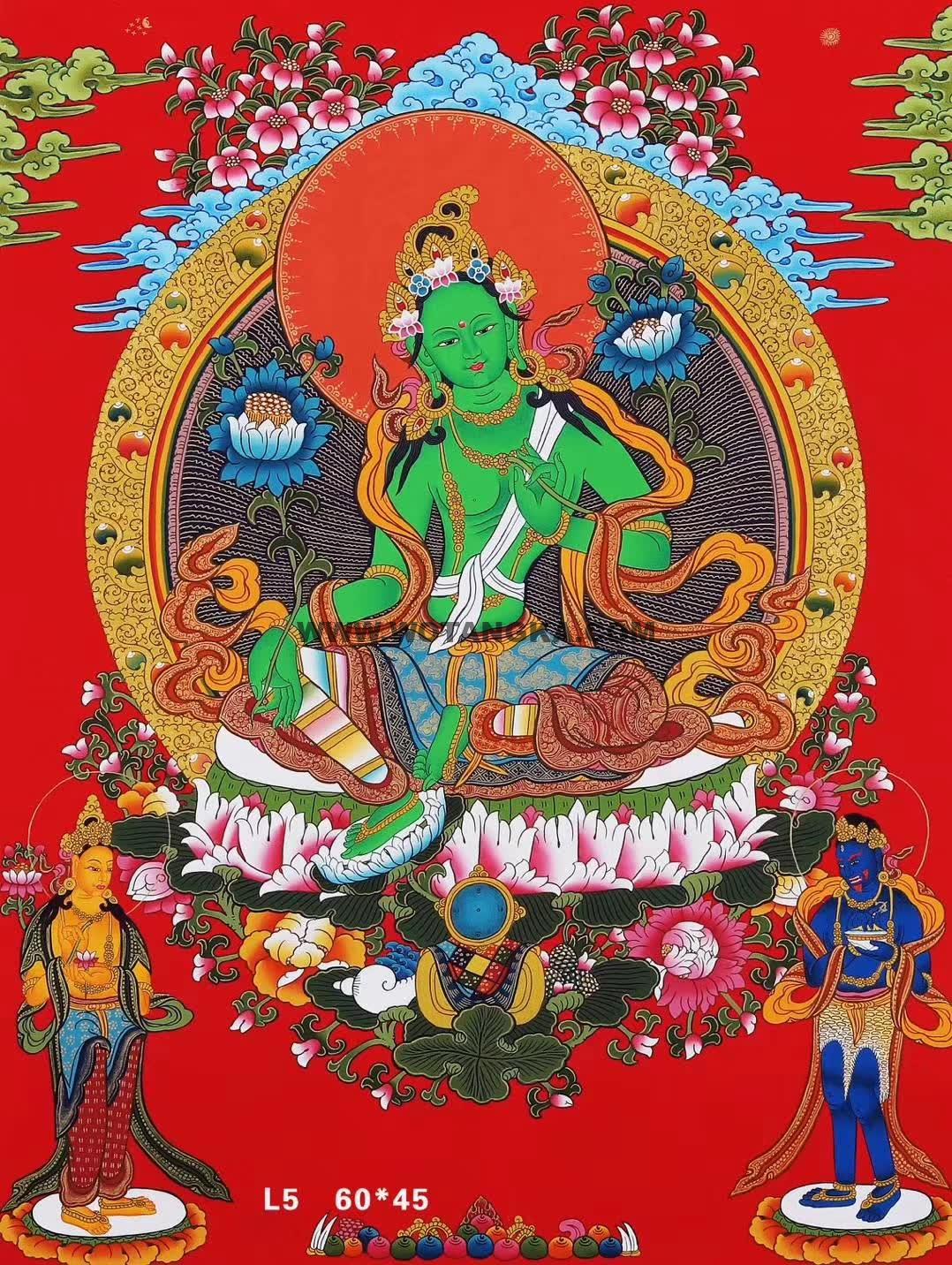 绿度母有消除一切众生的烦恼痛苦、满足一切众生愿求,现世富贵长寿平安吉祥、除诸病苦业魔障碍等,帮助众生解脱生死苦海,命终往生极乐世界,获得究竟的安乐,因为其救度之迅速、摧灭魔业之勇猛,故又称作“救度速勇母”。