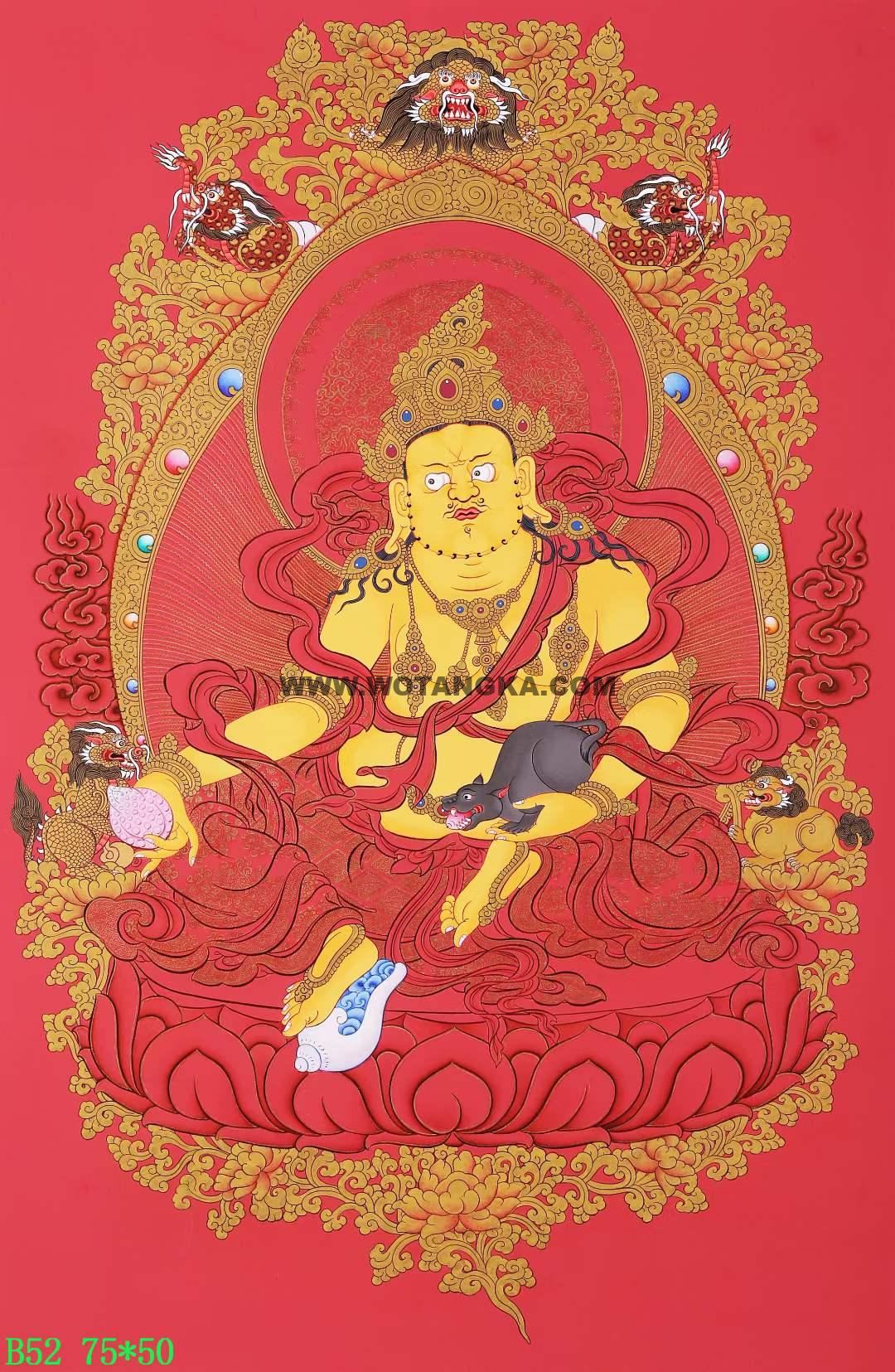 尼泊尔画师力作纯手绘布本唐卡【黄财神】。作品采用金粉混合天然颜料纯手绘而成。天然矿石颜料着色晕染,画工细腻,开脸殊胜,面容福德吉祥,作品主尊宝相传神。布图干净精美、画工非常的细腻,严格的遵照佛经的度量仪轨如法绘制,期待有缘人。
