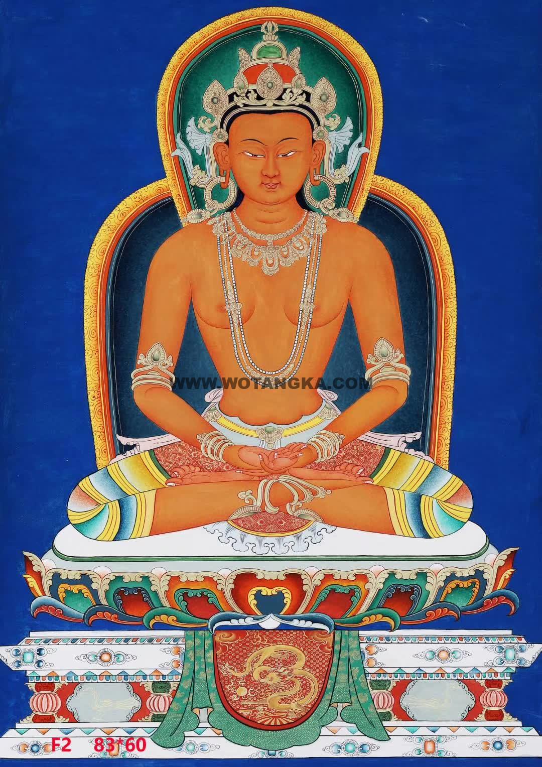 尼泊尔成名画师力作精品【阿弥陀佛】唐卡,作品采用24K真金金粉混合矿物颜料纯手绘而成。本唐卡源于古格王朝寺院壁画,齐岗画派风格,纯正矿物质染料,纯金拉线。作品主尊宝相传神,布图精美、画工非常的细腻,严格的遵照佛经的度量仪轨如法绘制,期待有缘人。