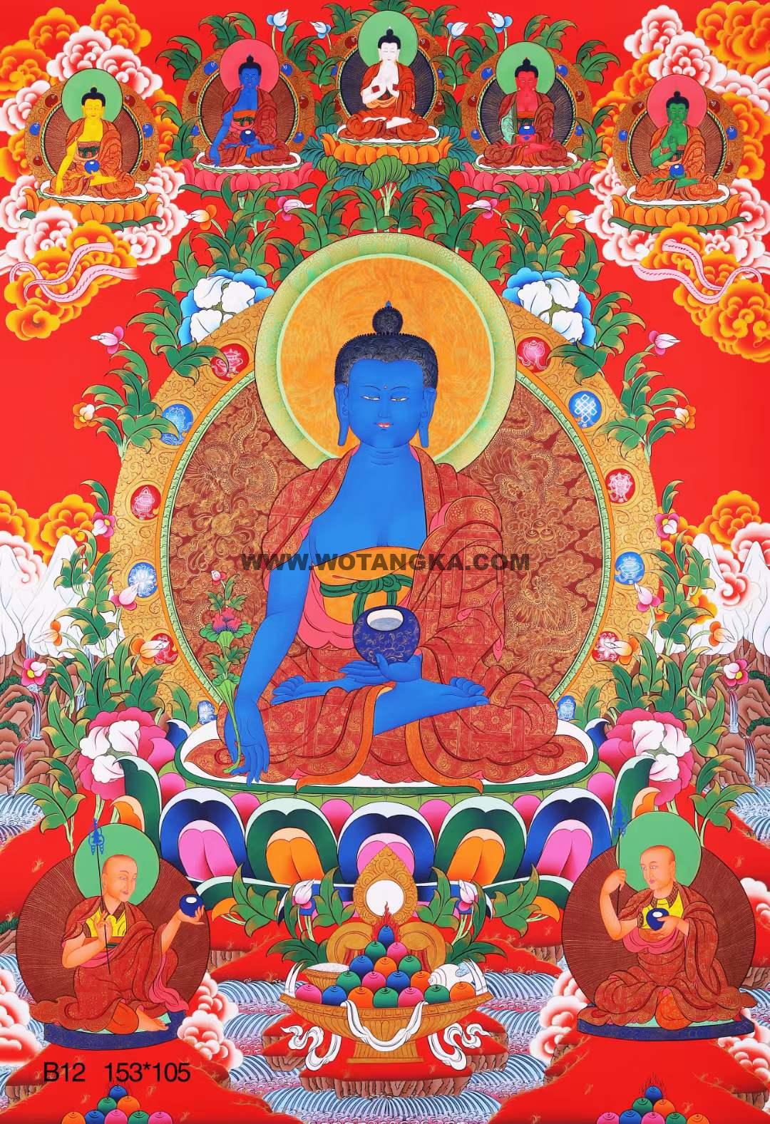 尼泊尔成名唐卡画师手绘力作精品红唐【 药师佛】唐卡手绘布本,采用天然矿物、植物、宝石、真金磨粉、纯手工加持绘制,开脸细腻殊胜、为难得之佳作、寻有福人。