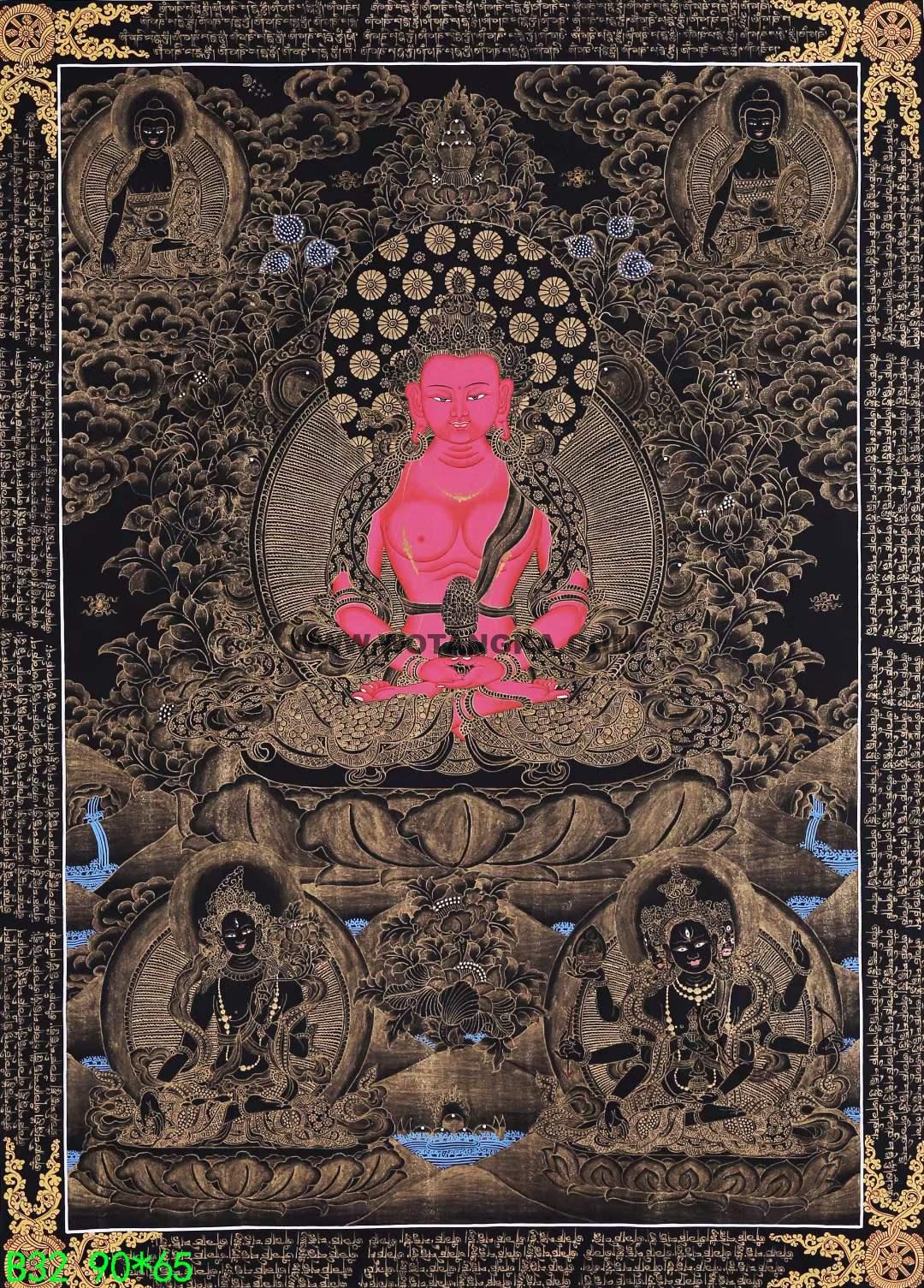尼泊尔成名画师力作纯手绘布本唐卡【 长寿佛】,唐卡采用24K真金金粉混合天然颜料纯手绘而成。作品主尊宝相传神。布图干净精美、画工非常的细腻,严格的遵照佛经的度量仪轨如法绘制,期待有缘人。